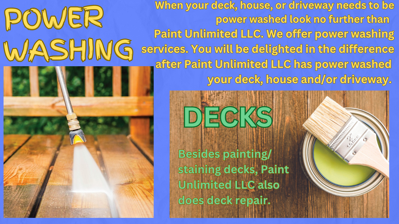 Besides interior/exterior painting, we also do power washing, deck repair/staining – to name a few of the services offered.